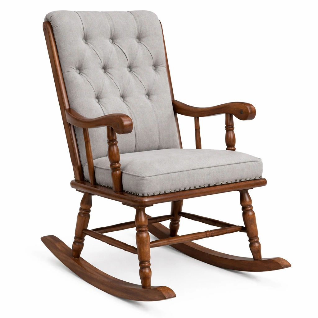 Silla mecedora de tela poliéster con estructura de metal y patines de madera