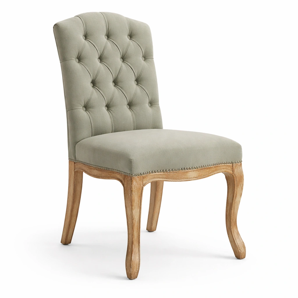 Sillas de comedor tapizadas de lino gris claro con estructura de madera