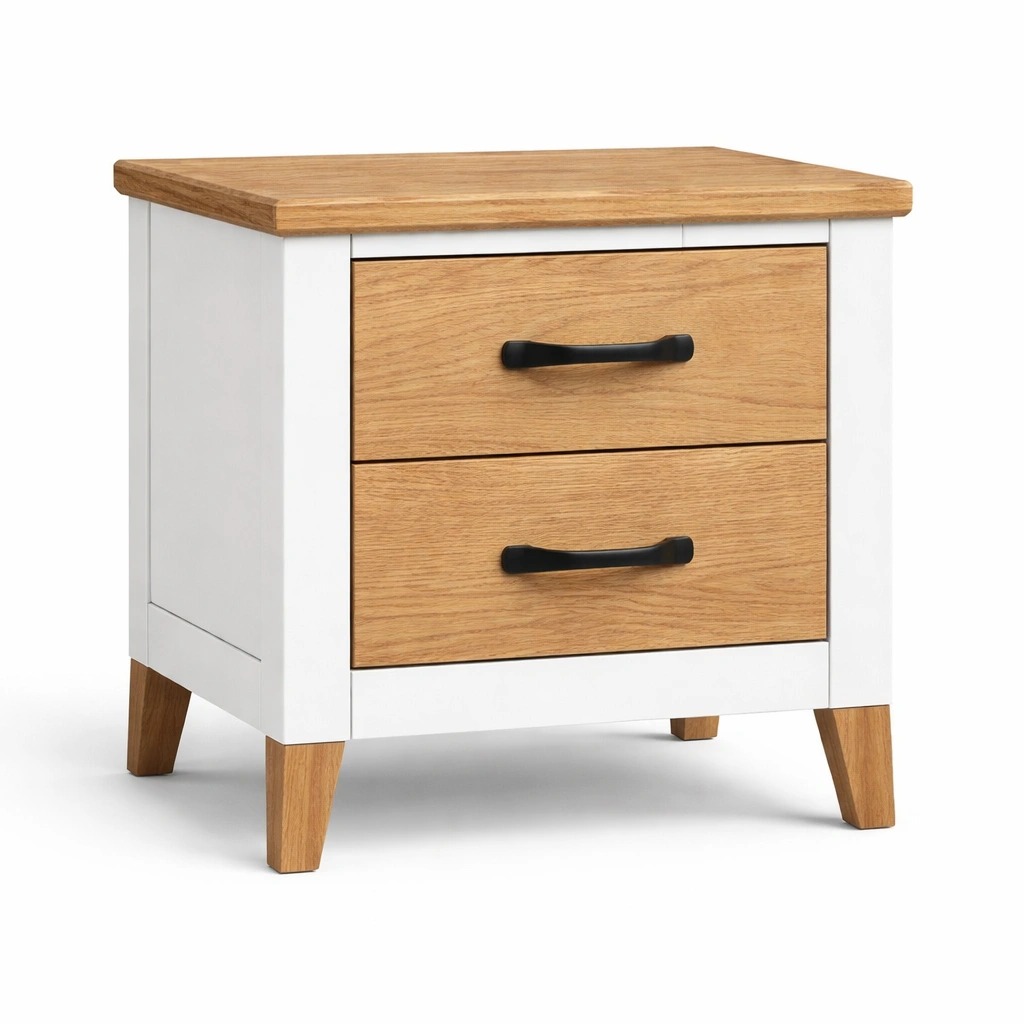 Detalles de diseño: Cajones: 2 Tipo de tirador: Metálico negro Patas: Rectas de madera de roble