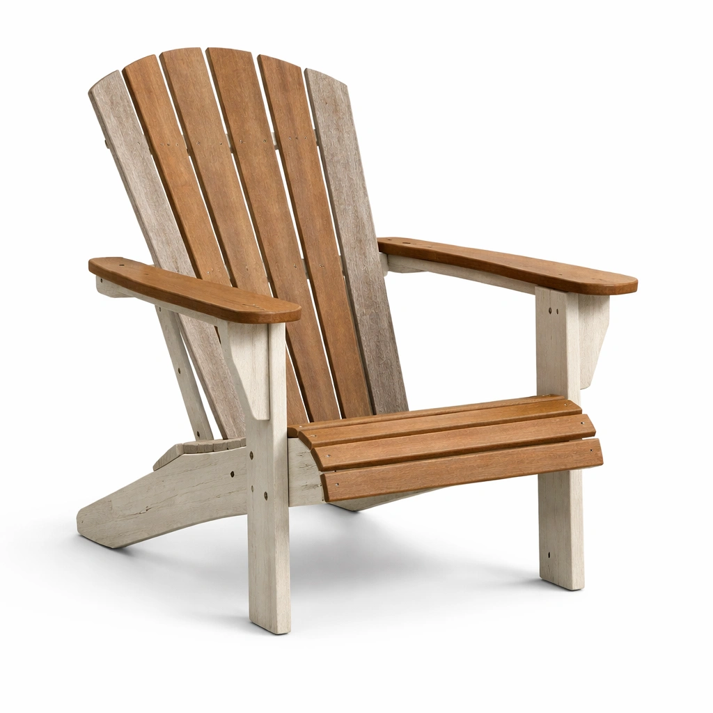 Esta silla Adirondack está hecha de madera de acacia resistente.